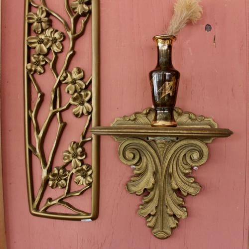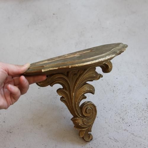 小さな台が付いていて、壁につけて、小さな一輪差しやオブジェや写真などを飾れるウォールデコです。