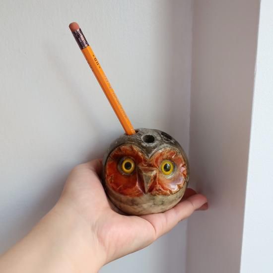 フクロウモチーフの石でできたペン立てで可愛らしいです。
