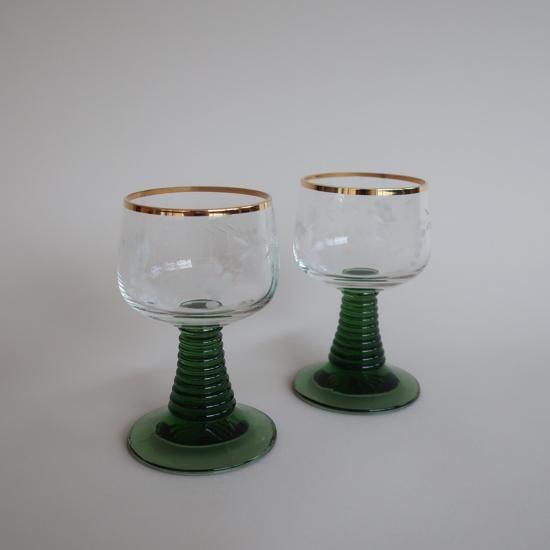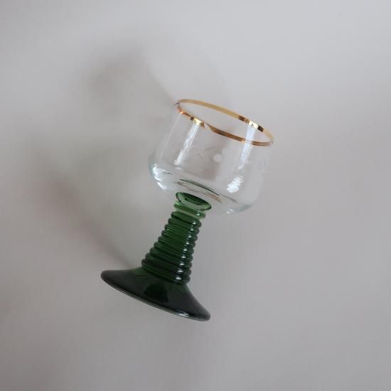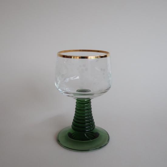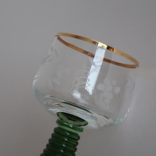 ぽってりとしたグリーンの土台に、カッティングで葡萄の模様とゴールドの縁取りが素敵なデザインです。