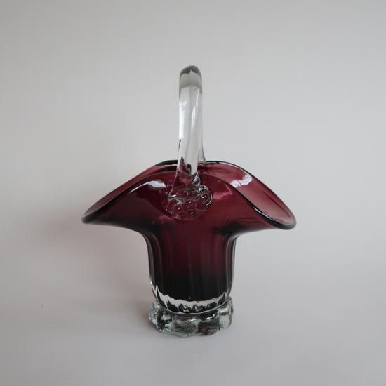 アメリカで買い付けましたVintage bag motif purple glass flower vase/ビンテージ バッグモチーフ パープル ガラス フラワーベース/花器/花瓶(775)です。
