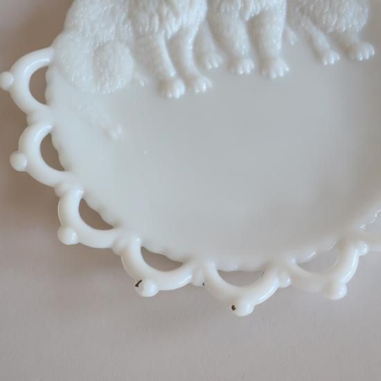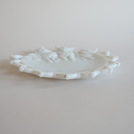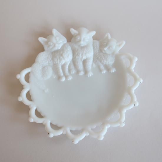 アメリカで買い付けてきましたvintage milk glass cats plate /ビンテージ ミルクガラス ネコ柄プレート(816)です。