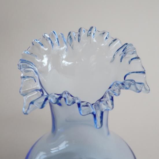 ブルーにフチのフリルのデザインが可愛い花瓶です。