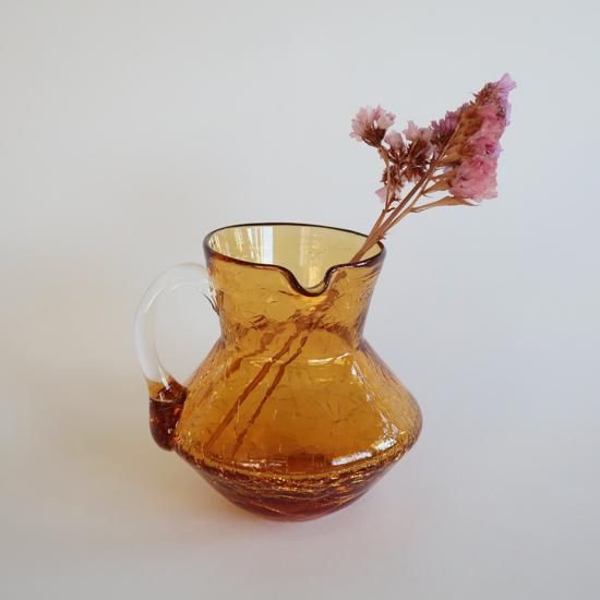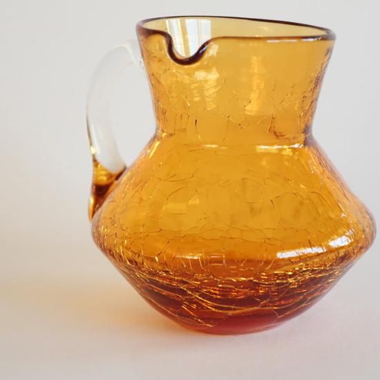 ピッチャーのような形にクラック模様(ヒビ割れ模様)に琥珀色が美しいデザインです。