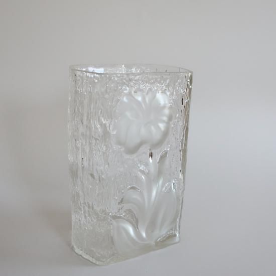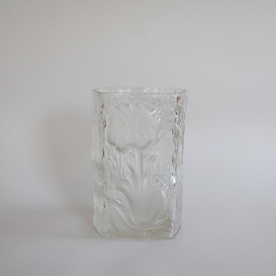 アメリカで買い付けましたVintage clear×flower glass flower vase/ビンテージ クリアガラス 花柄 フラワーベース /花器/花瓶(897)です。