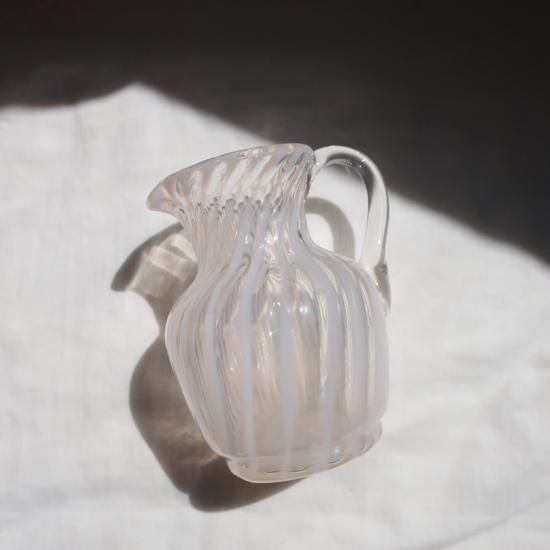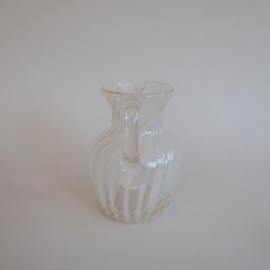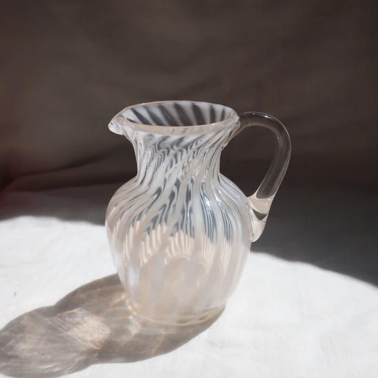 アメリカで買い付けましたVintage White Opalescent Swirl pitcher Vase/ビンテージ ホワイト オパールセントスワール フラワーベース/花器/花瓶(963)です。
