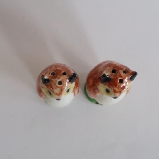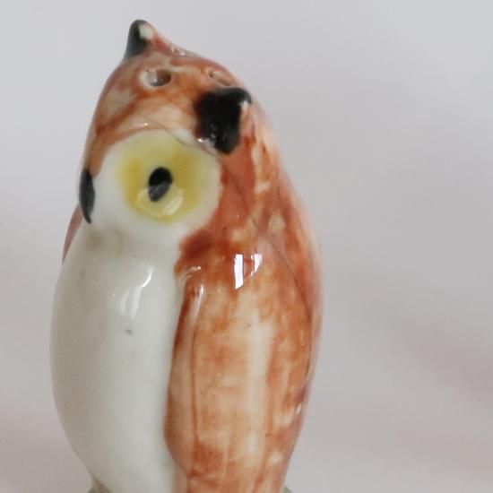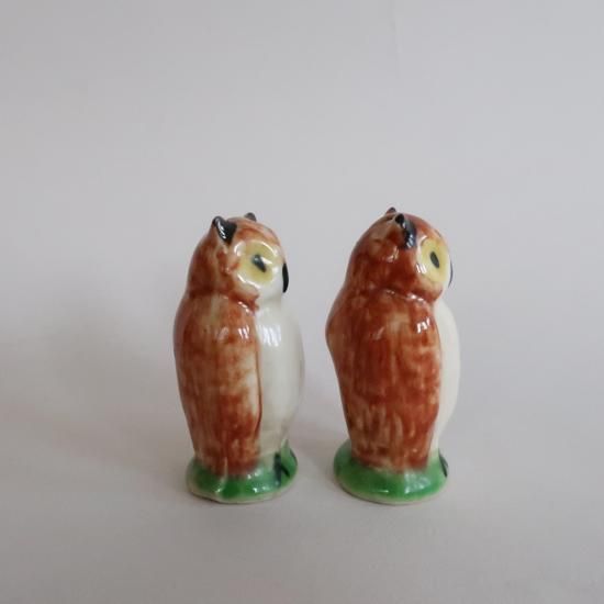 なんとも愛らしい表情のふくろうの塩胡椒入れのペアセットです。