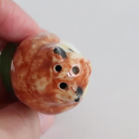 頭の上に穴が3つありますが、一つは2ヶ所詰まっていて、もう一つは1ヶ所詰まっているので、小さなオブジェとしてオススメです。
