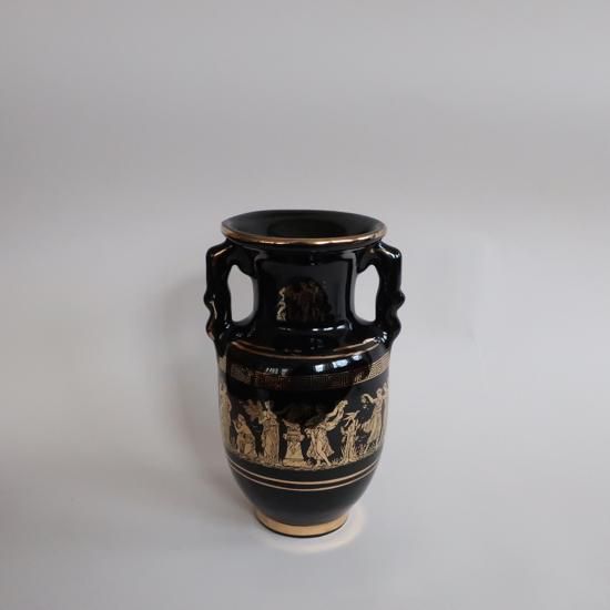 少し大きめサイズのフラワーベースで、黒ベースに24Kのゴールドの絵付けが美しいです。