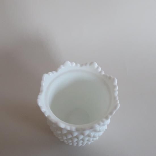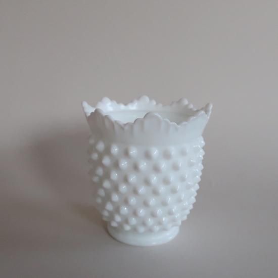 アメリカにて買い付けてきましたVintage Milk glass Sugar pot (hobnail)/ビンテージ ミルクガラス ホブネイル シュガーポット(A090)です。