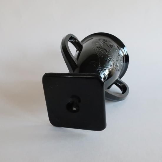L.E. Smith社製の1930年代頃のブラックのミルクガラスのフラワーベースです。