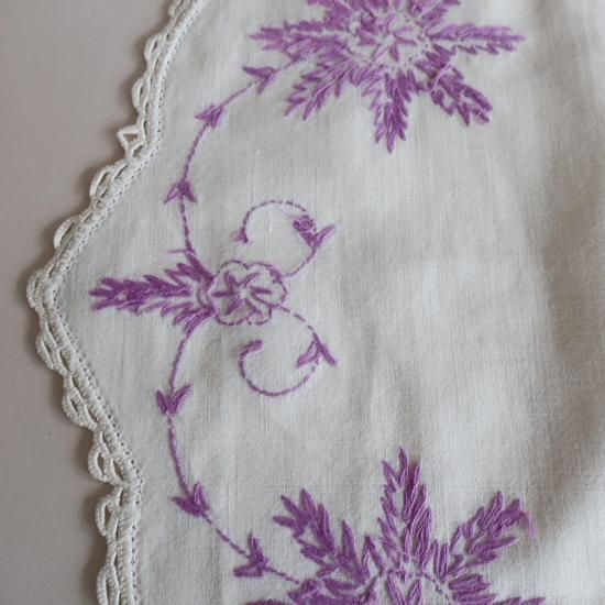 淡いパープルの刺繍糸の色味と柄が素敵なデザインです。
