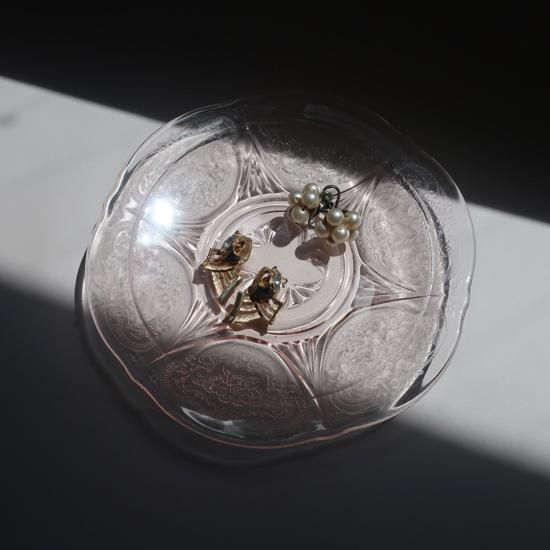 Vintage Pink depression glass small plate/ビンテージ ピンク ガラス スモール プレート/小皿(A193)です。