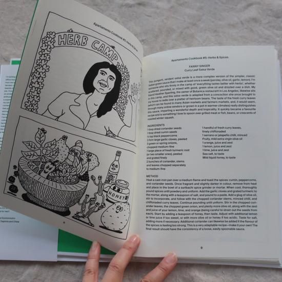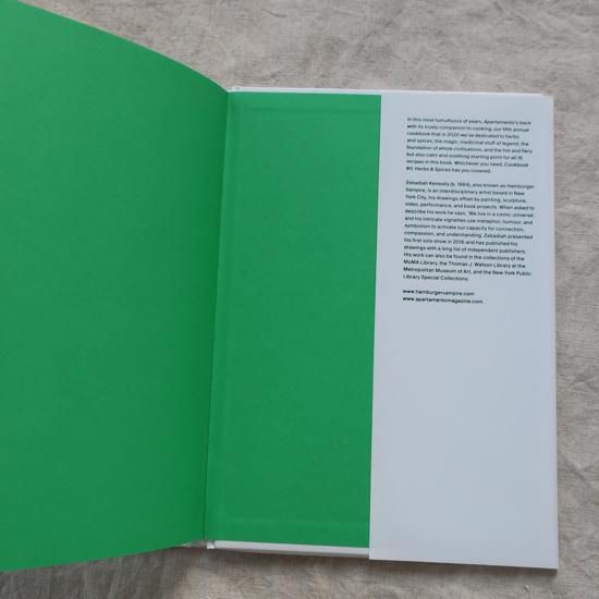 スペイン発のインテリア雑誌『Apartamento』が2016年よりスタートした、年一回刊行のレシピブック『Apartamento Cookbook』シリーズ。第5号は『Apartamento Cookbook #5: Herbs & Spices』。魔法のような薬効を持ち、あらゆる文明の基礎となっている伝説の食材である「スパイス」と「ハーブ」。熱く燃え滾るようでありながら、穏やかに和らげるその特徴が、本書に掲載されている16のレシピの出発点となっている。イラストレーションはアメリカ人アーティストのゼバディア・キニーリー(Zebadiah Keneally)が手がけ、世界各国のシェフ、料理評論家、作家が特集されている。
