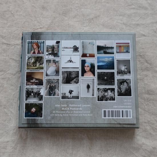 国際的写真家集団「マグナム・フォト」正会員を務めるアメリカ人フォトグラファー、アレック・ソス(Alec Soth)が2015年にロンドンのサイエンス・ミュージアム内「Media Space」で開催した展覧会 「Gathered Leaves:Photographs by Alec Soth」 に合わせてMACKより発行された作品集「Gathered Leaves」(MACK) のポストカード・エディション。28枚の高品質ポストカードに加え、展覧会内容を収録したブックレットが収められている。