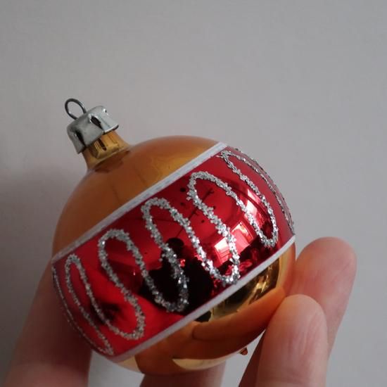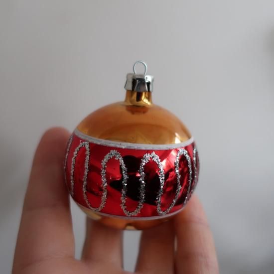 オレンジと赤のコントラストにラメのデザインが素敵なビンテージならではのオーナメントです。