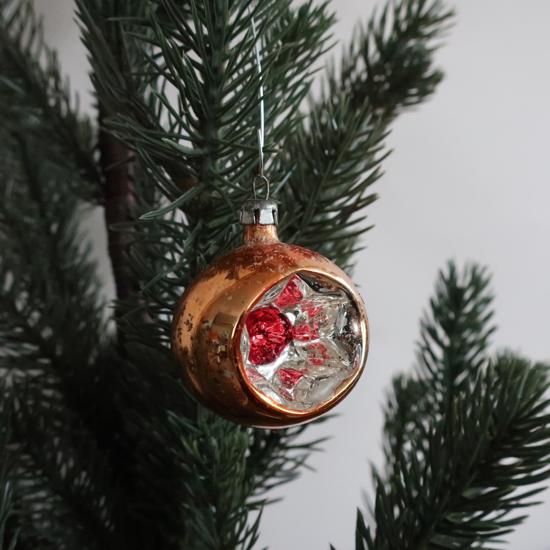 Indent ornamentsと呼ばれる、凹ませたデザインが特徴的なデザインがビンテージならではのオーナメントです。