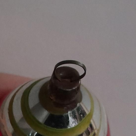 上の金具部分は元々少し斜めです。無理に触ると割れますので、お気をつけ下さい。