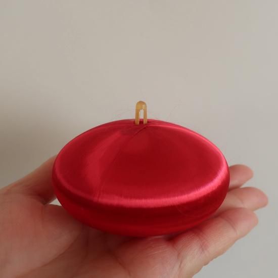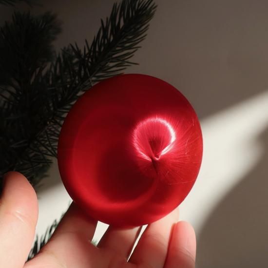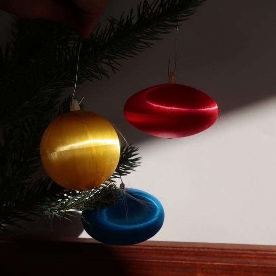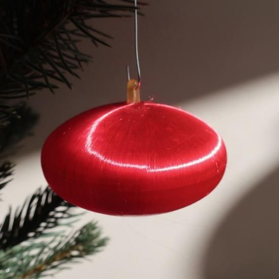 シルクの糸を巻き付けていて、つやつやと光の輪ができる美しいデザインがビンテージならではのオーナメントです。ツリーが一気に華やぎます。