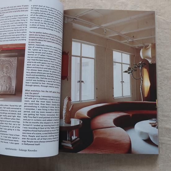スペイン発、2008年に創刊した年二回刊行のインテリア雑誌『Apartamento』。創刊15周年記念号である第30号の表紙を飾るのは、アメリカ人シンガーソングライター、レコードプロデューサー、女優、モデルのソランジュ・ノウルズ(Solange Knowles)。ちなみに姉がビヨンセという彼女の家はとっても素敵なインテリアで個人的にすごく好みです。造形作家のUgo La Pietraや、1990年から2008年まで『メゾンマルタンマルジェラ』の写真を撮り続けた唯一のフォトグラファーのMarina Faustや、2011年からリアーナのスタイリストのMel Ottenbergや、映画監督のLevan Koguashviliなど、素晴らしいインテリアの数々です。