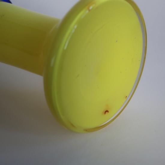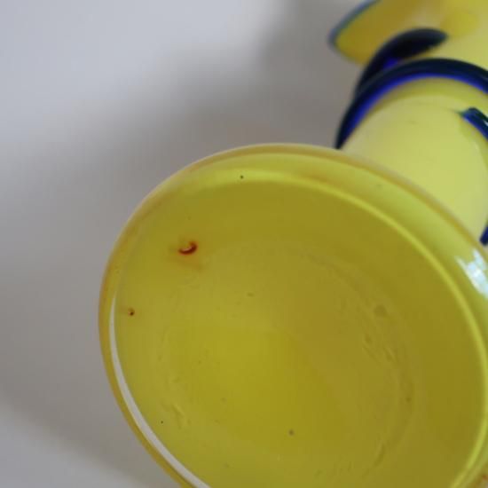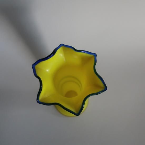 アメリカで買い付けましたVintage Yellow×Blue Glass Ruffled Flower Vase/ビンテージ イエロー ガラス ラッフル フラワーベース /花器/花瓶(A317)です。