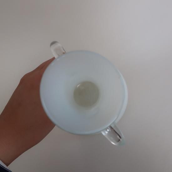 ホワイトの壷のようなデザインとクリアの取っ手が可愛いデザインの花瓶です。