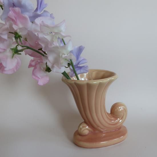 アメリカで買い付けましたVintage Cornucopia Ceramic Flower Vase/ビンテージ 陶器 コルヌコピア フラワーベース /花器/花瓶(A382)です。