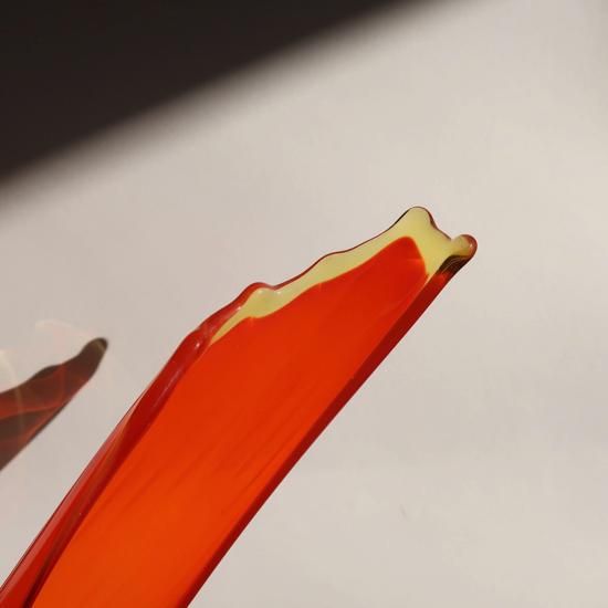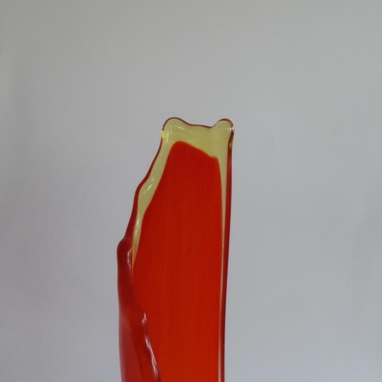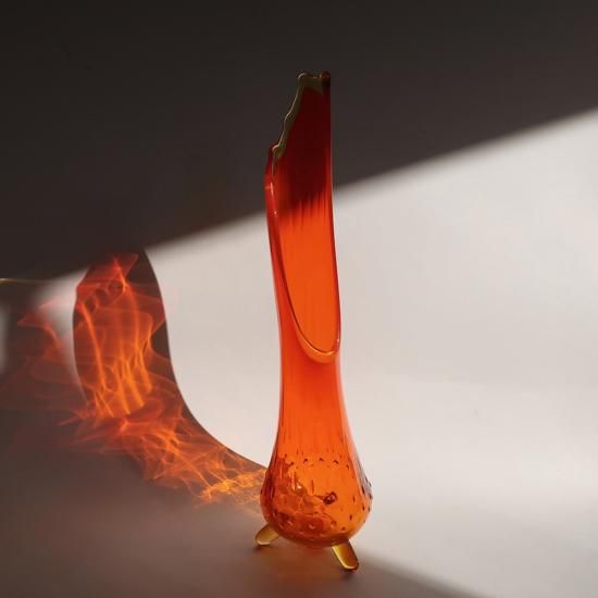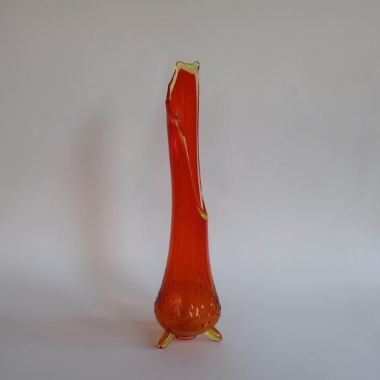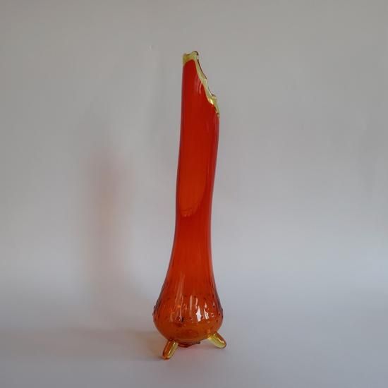 アメリカにて買い付けましたVintage Swung Art Glass Orange Vase L size/ミッドセンチュリー アートガラス フラワーベース /花器/花瓶(A475)です。