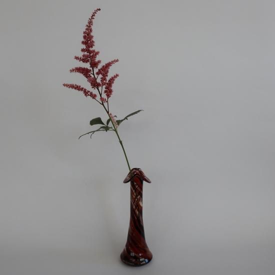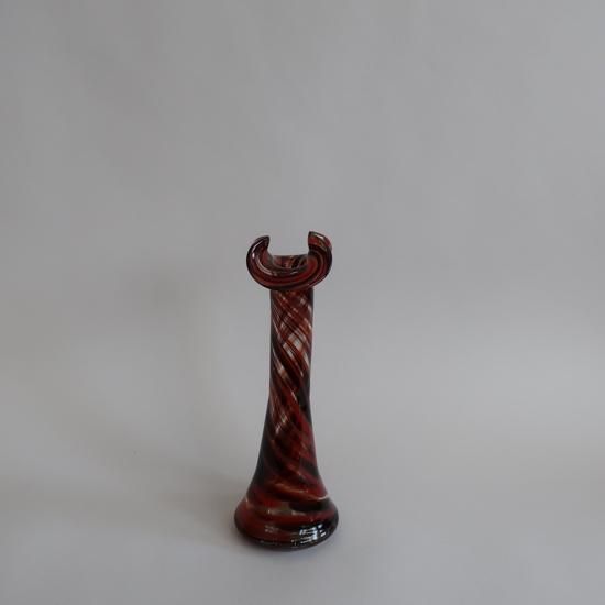 赤と少しパープルがかったブラウンのマーブルが美しいフラワーベースです。
