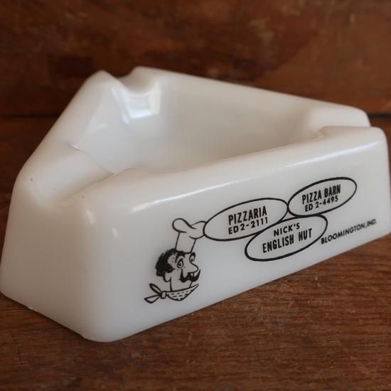 ピザ店の灰皿で三角形とミルクガラスのデザインがいい感じの灰皿です。