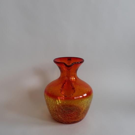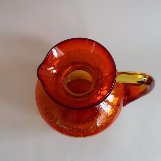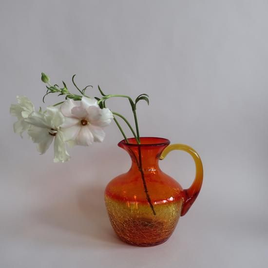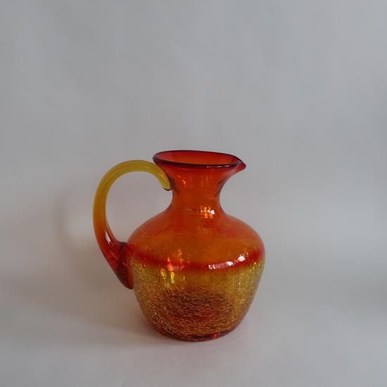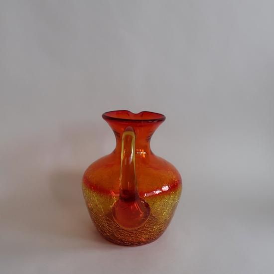 アメリカで買い付けましたVintage Orange Glass Jug Flower Vase/ビンテージ オレンジ クラックガラス ピッチャー フラワーベース /花器/花瓶(A502)です。