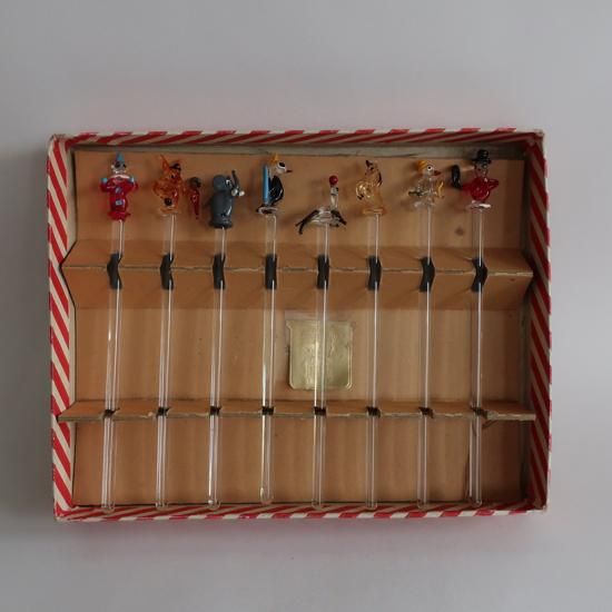 ガラス製のマドラーでサーカスモチーフが可愛いデザインです。