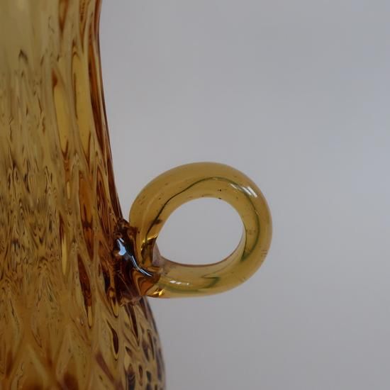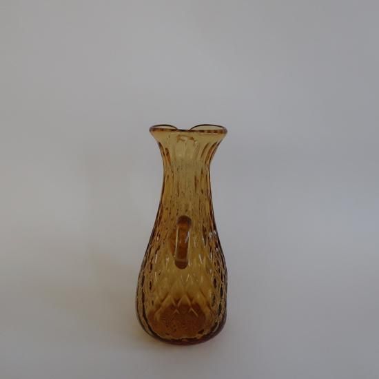 ピッチャーのようなシルエットにアンバーカラーにダイヤ型の模様が美しいです。