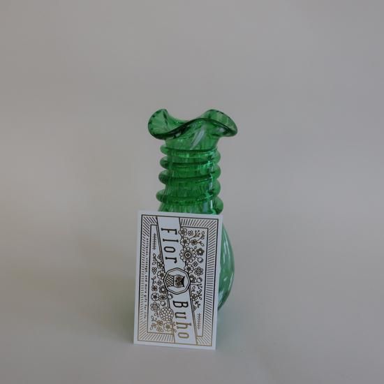グリーンのマーブルに首のぐるぐるっとしたデザインが可愛らしいフラワーベースです。
