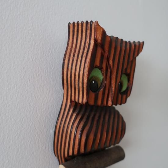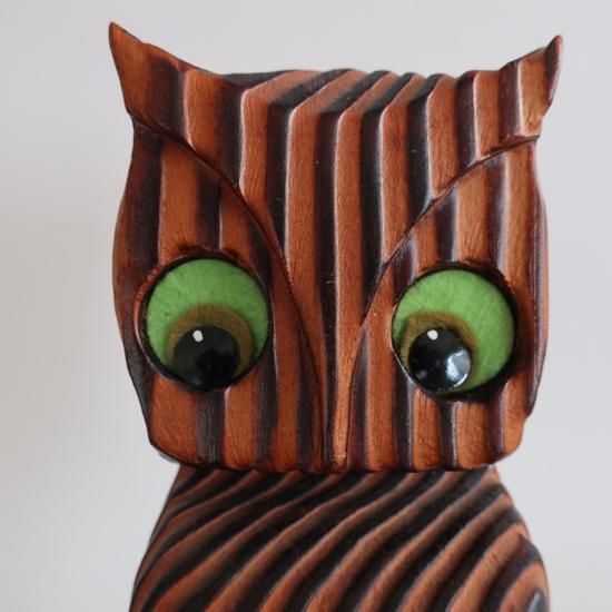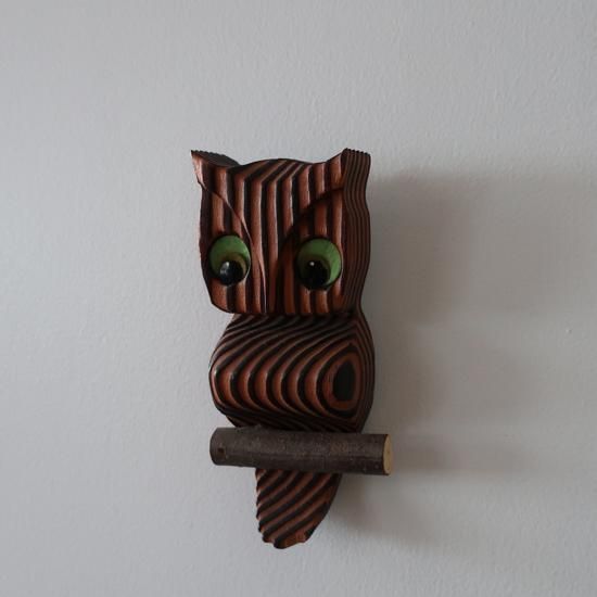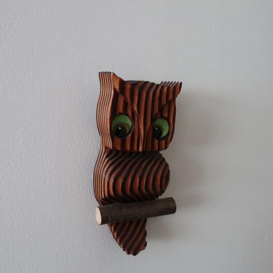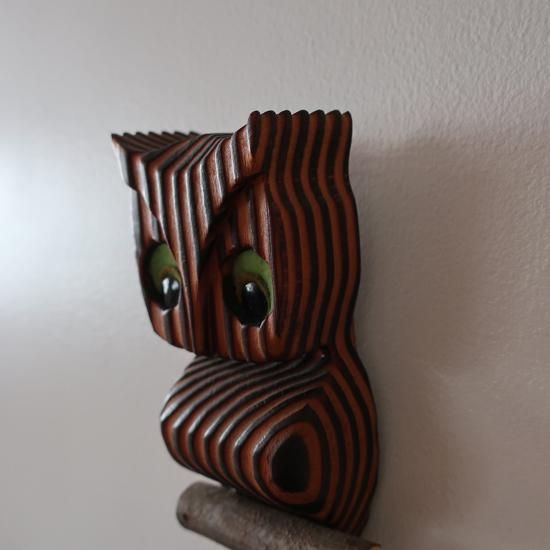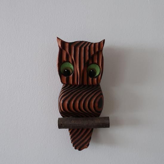 ミッドセンチュリー時代の1960年代から1970年代頃にとても流行した杉の木のカービングで出来たフクロウのウォールデコです。