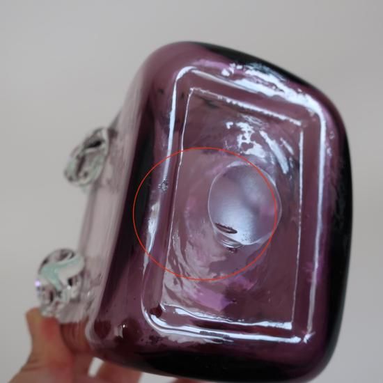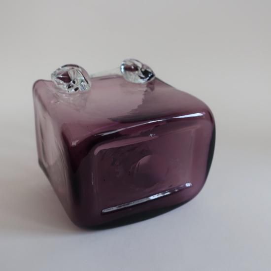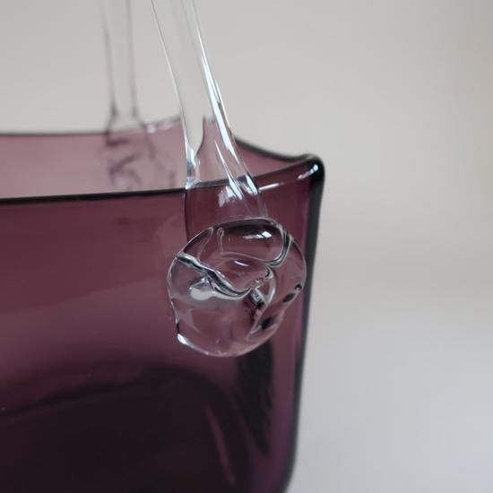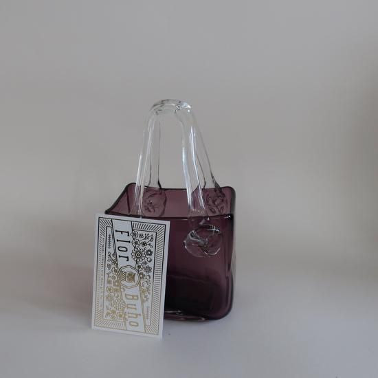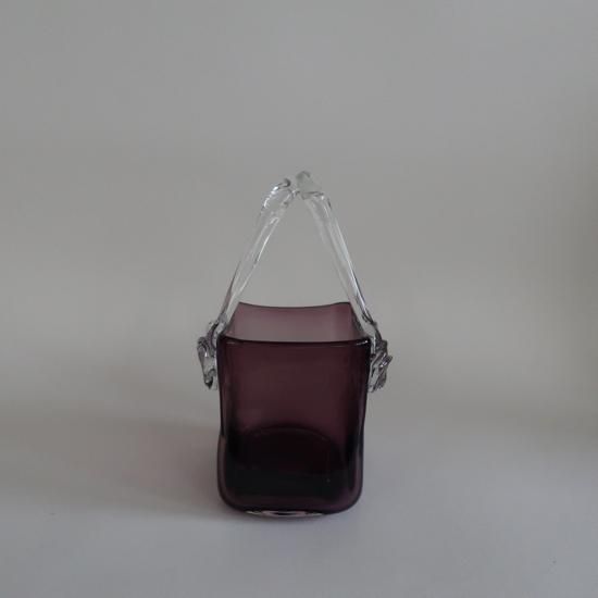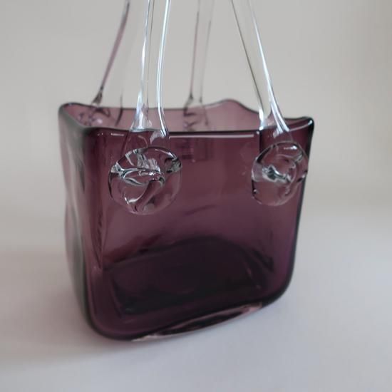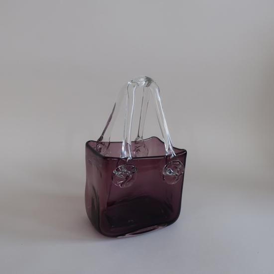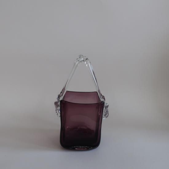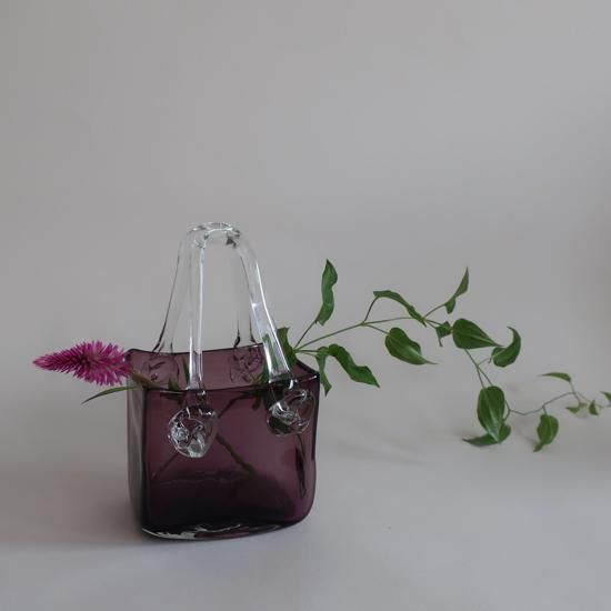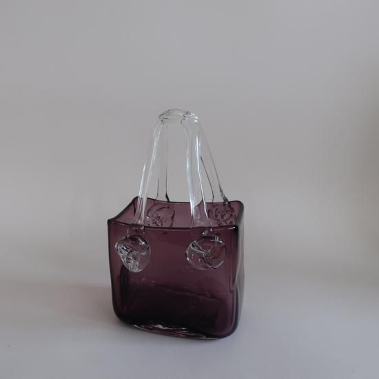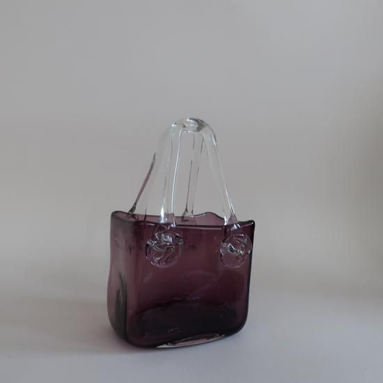 アメリカで買い付けましたVintage bag motif glass flower vase purple/ビンテージ バッグモチーフ ガラス フラワーベース/花器/花瓶(A638)です。