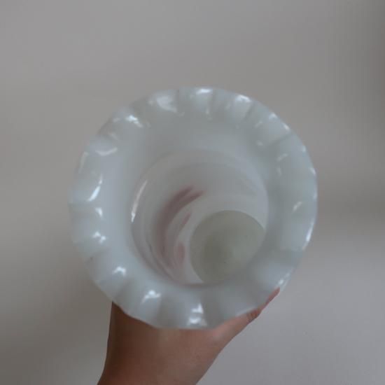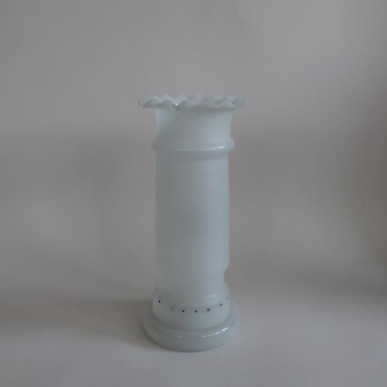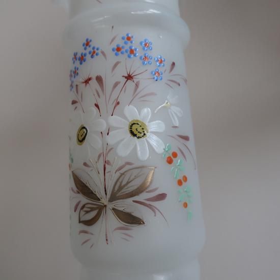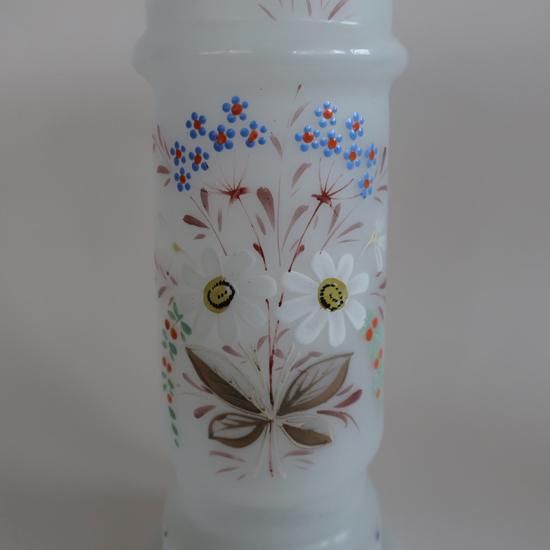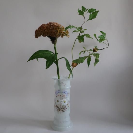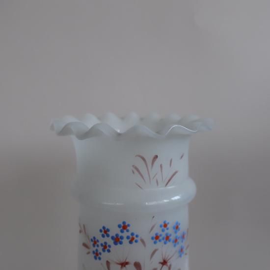 フロストガラスのマットな質感、ハンドペイントの繊細な柄が素敵な花瓶です。