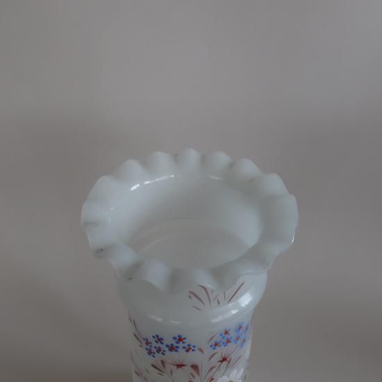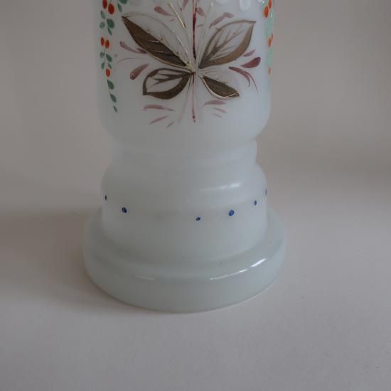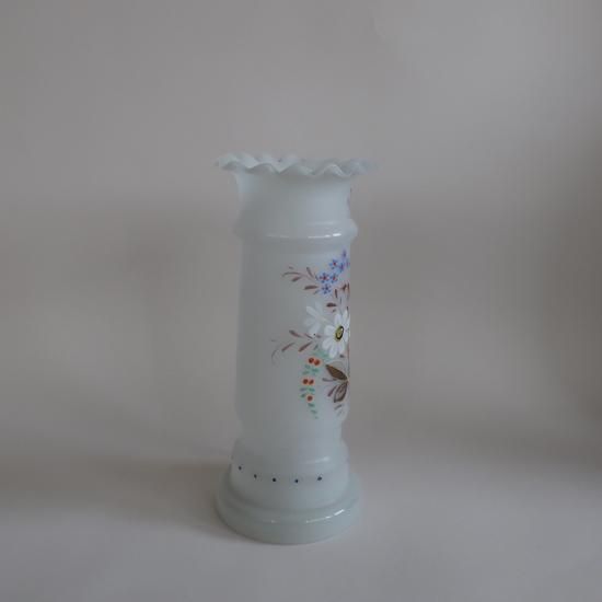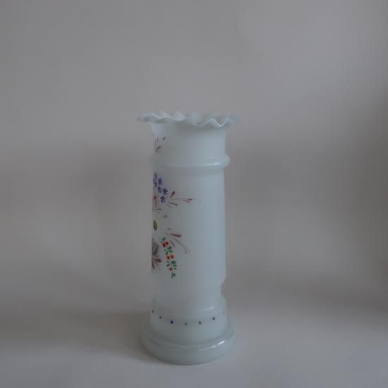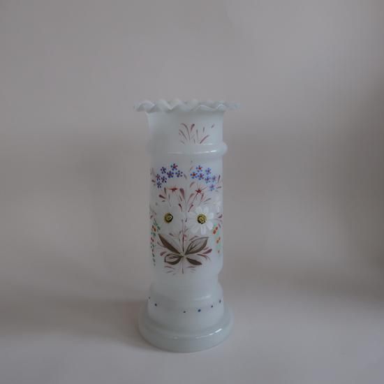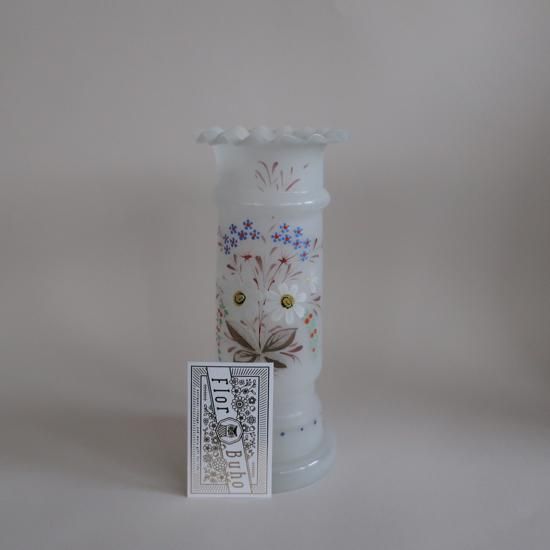 アメリカにて買い付けましたAntique frost Bristol Glass Hand painted satin vase/アンティーク フロストガラス フラワーベース /花器/花瓶(A639)です。