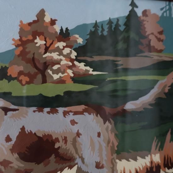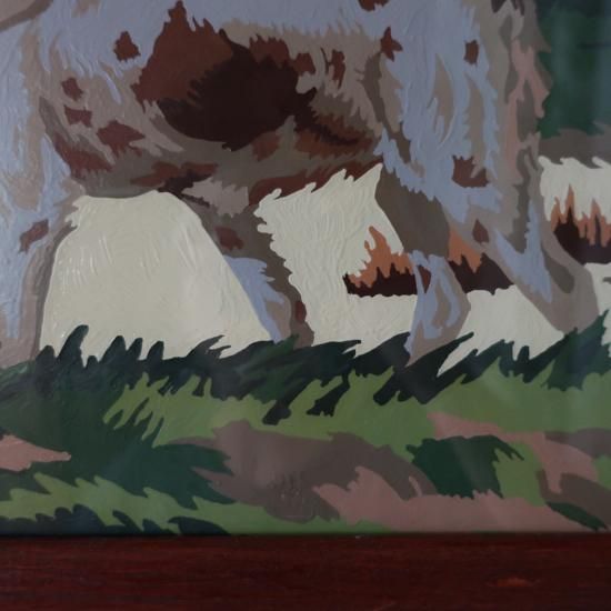 ミッドセンチュリー期に流行した番号に合わせて色を塗ると誰でも上手に描けるよ!というPaint by Numberと飛ばれるアートのウォールデコです。