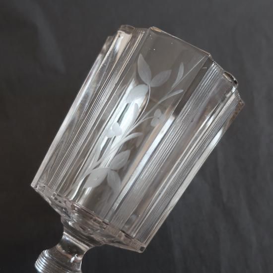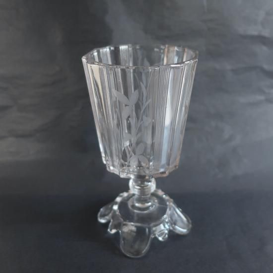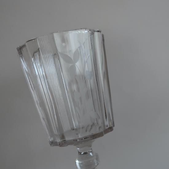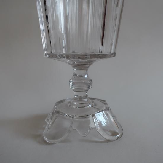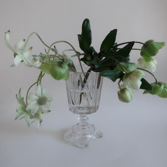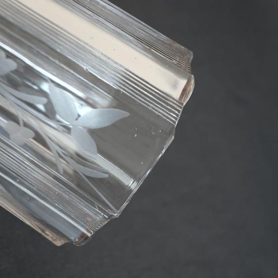 クリアガラスに可憐な花柄のカービングが施された美しいフラワーベースです。
