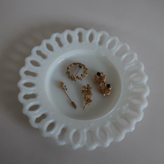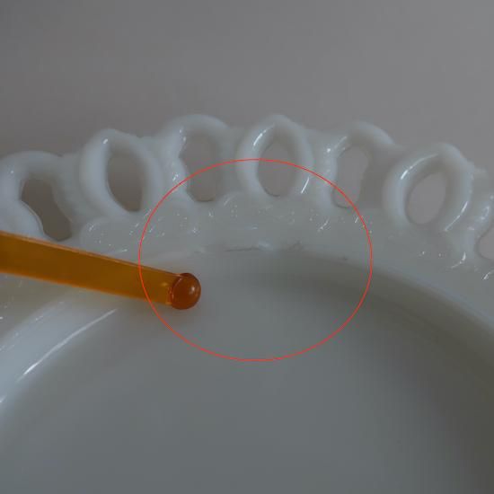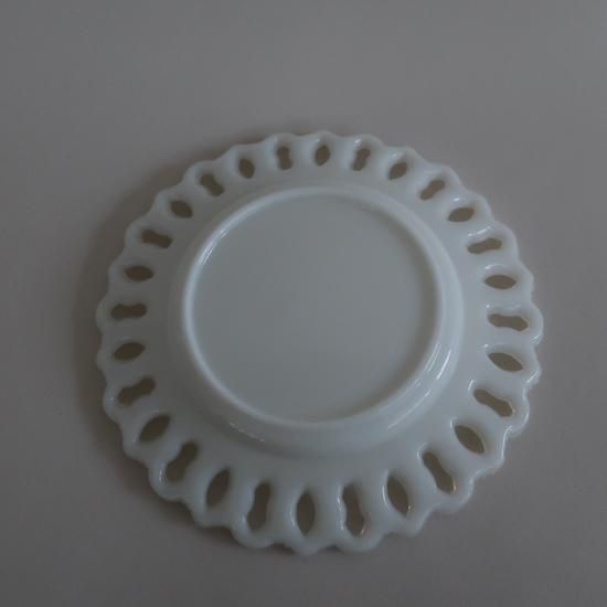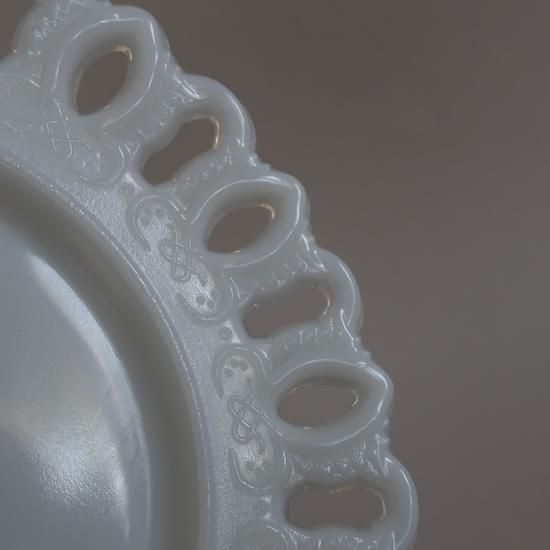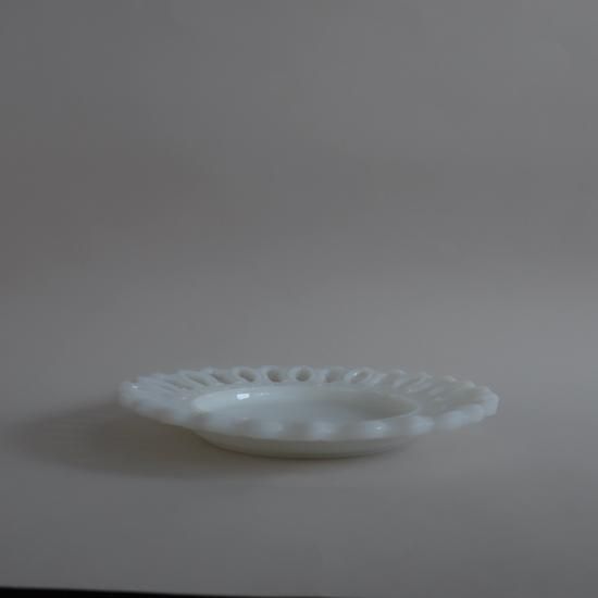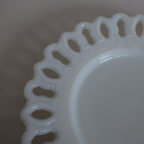 レースの様なフチが美しいミルクガラスでできたプレートです。