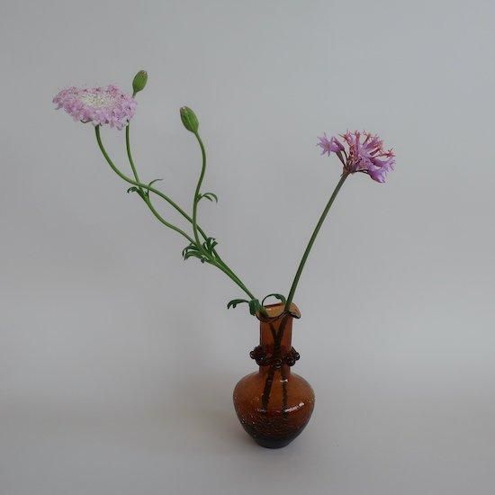 アメリカで買い付けましたVintage mini amber glass flower vase/ビンテージ アンバー ガラス ミニ フラワーベース /花器/一輪挿し(A813)です。