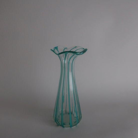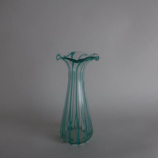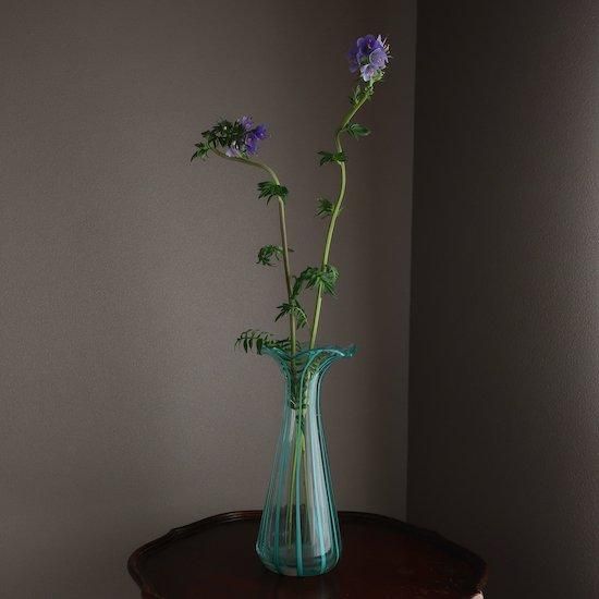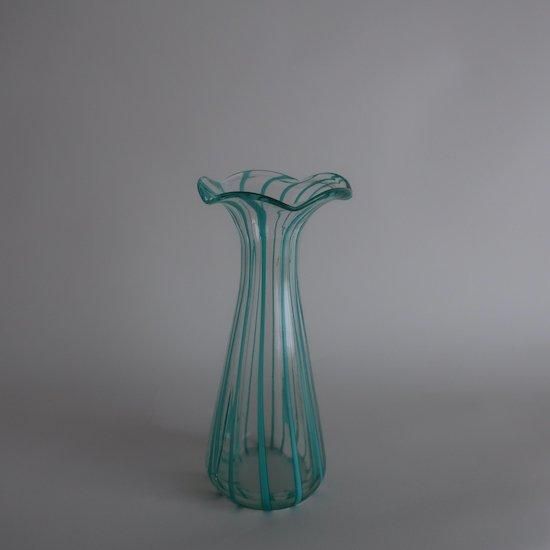 アメリカで買い付けましたVintage Blue Stripe glass flower vase/ビンテージ ブルー ストライプ ガラス フラワーベース /花器/一輪挿し(A922)です。
