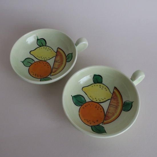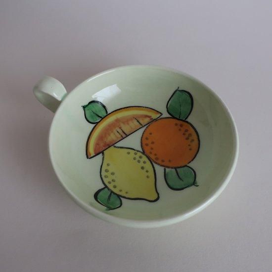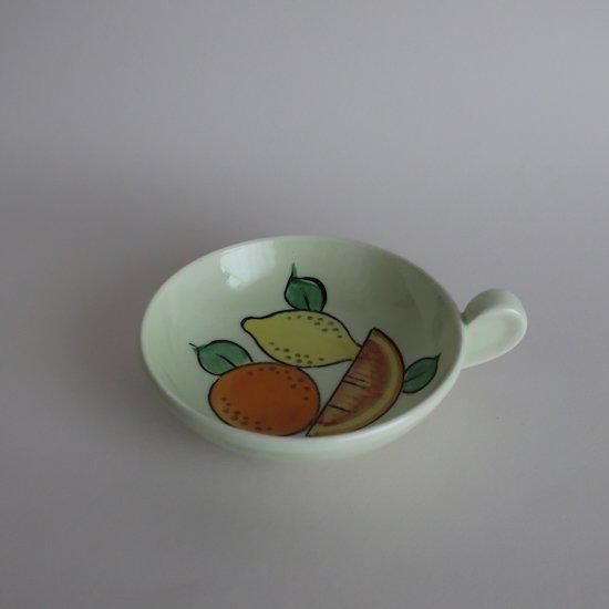 柑橘類の絵柄と淡いグリーンの色味がとても可愛い小皿です。