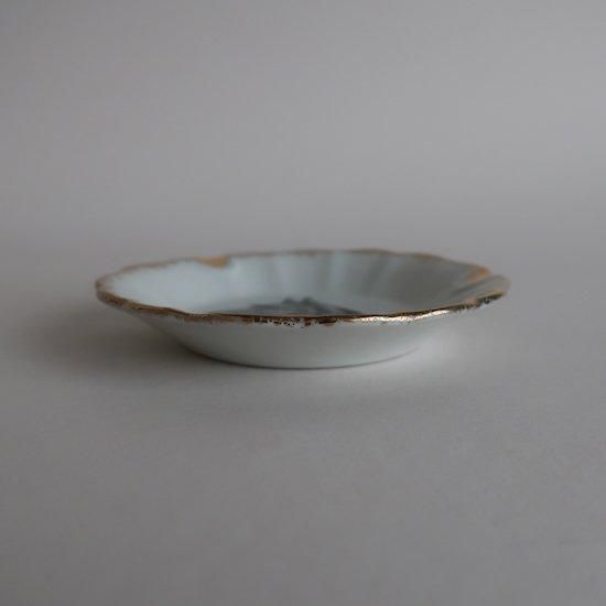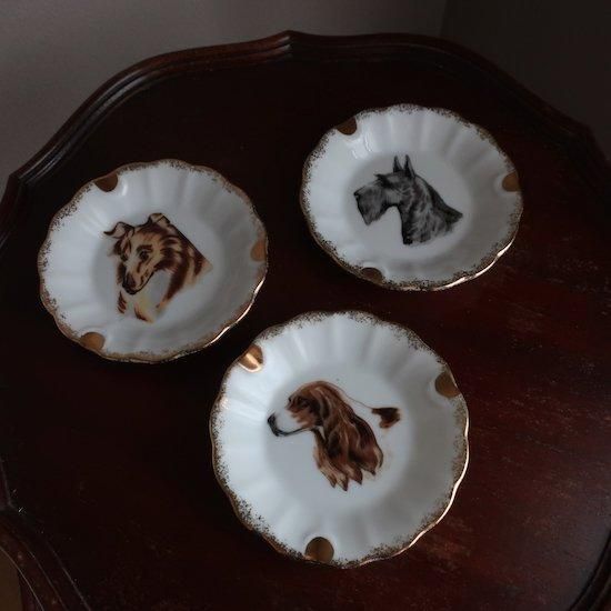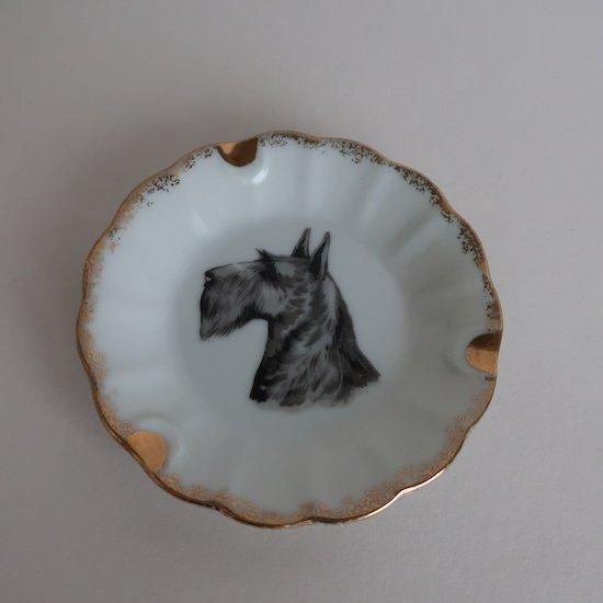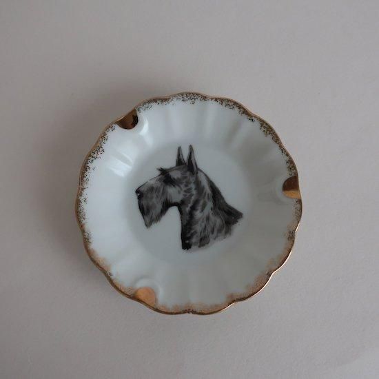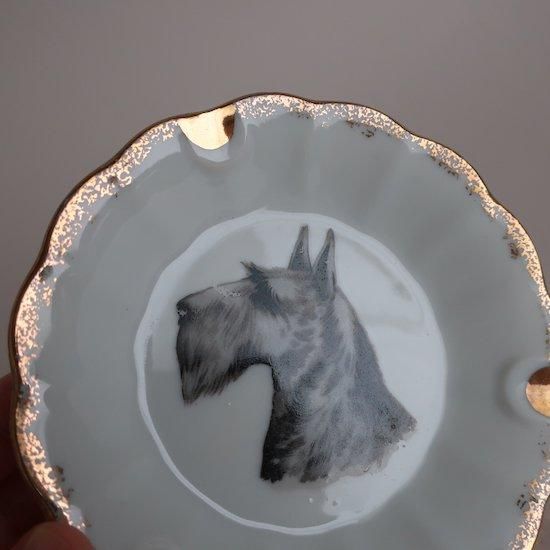 犬の絵柄とゴールドの絵付けが可愛いデザインの小さなプレートです。