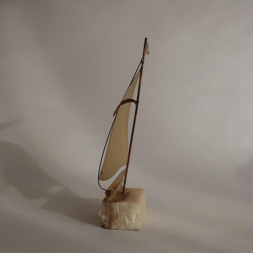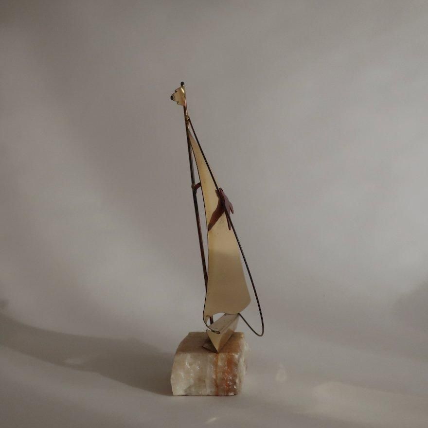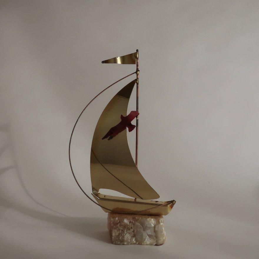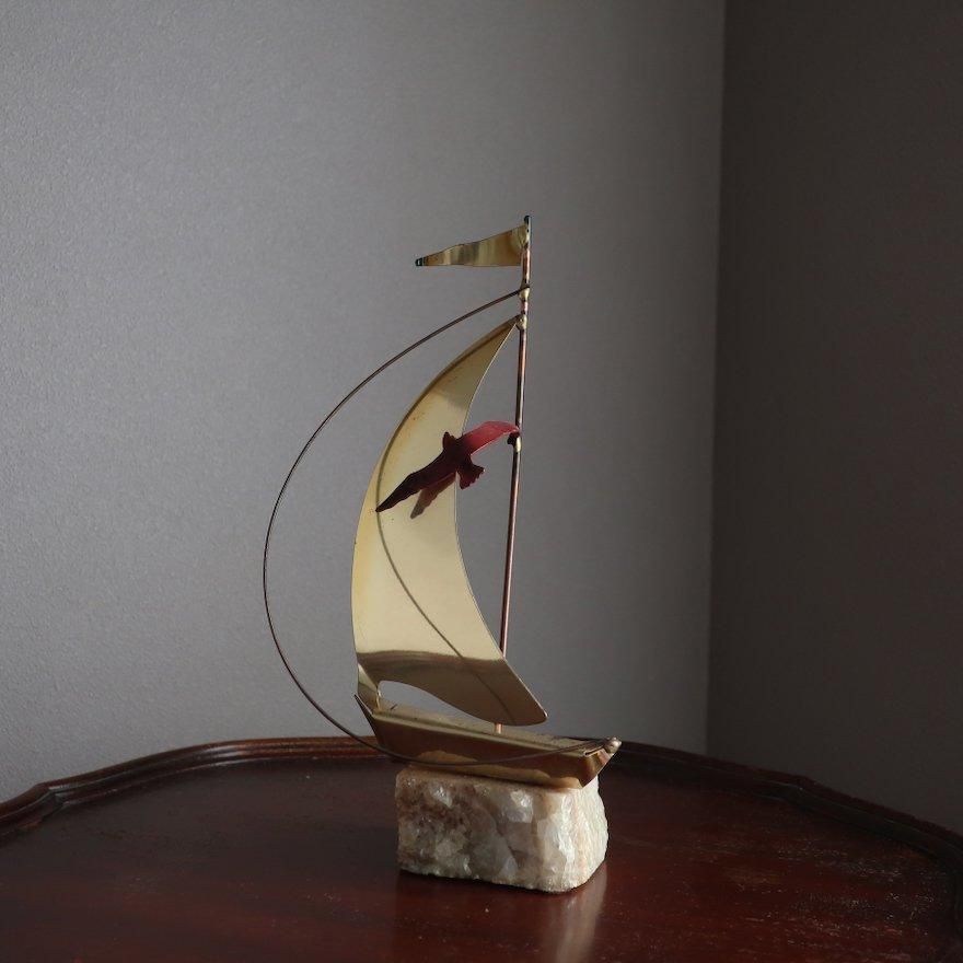 アメリカ買い付けのVintage Mid Century Brass Sailboat Object Sculpture /ビンテージ 真鍮製 船モチーフ オブジェ/置物(A973)です。