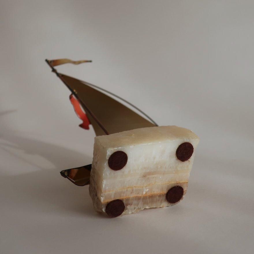 ミッドセンチュリーでは結構定番のアイテムの真鍮とマーブル天然石の組み合わせのオブジェです。