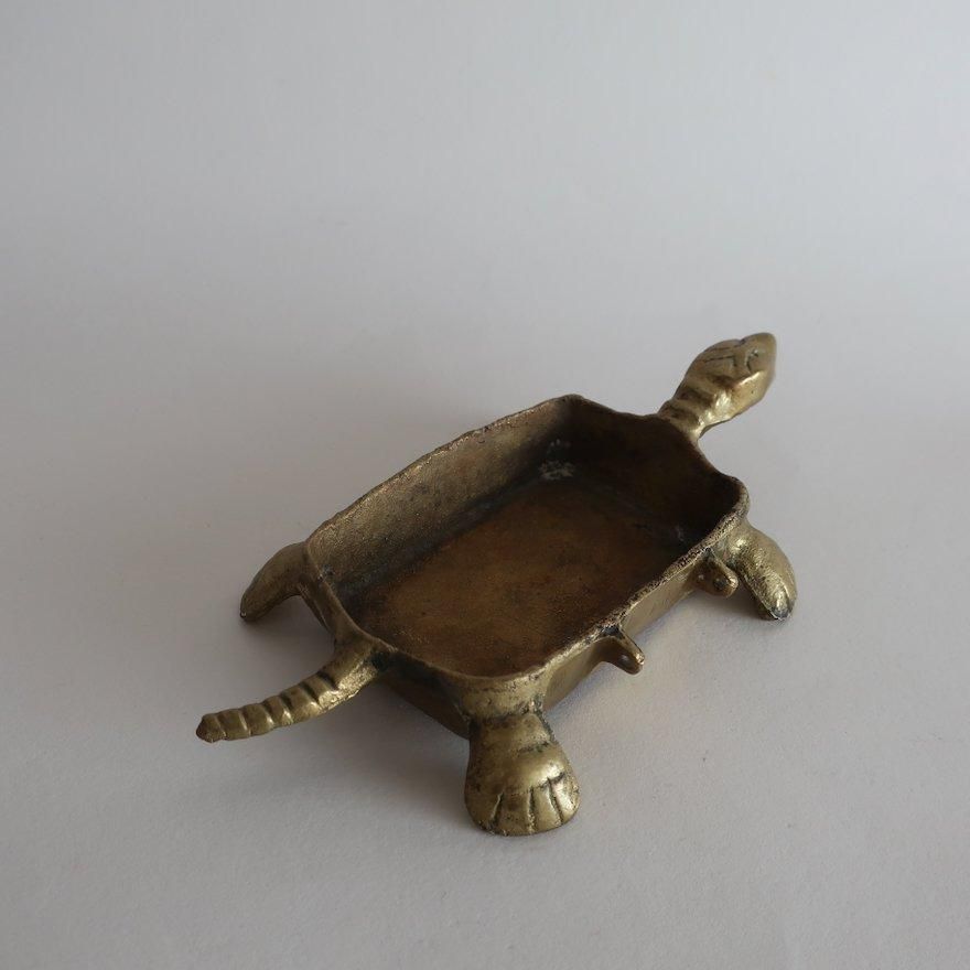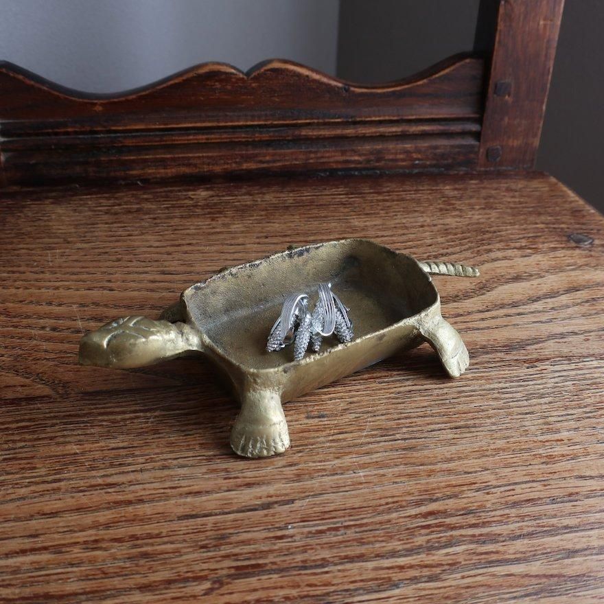 可愛らしい亀モチーフの真鍮で作られた小物入れオブジェです。
