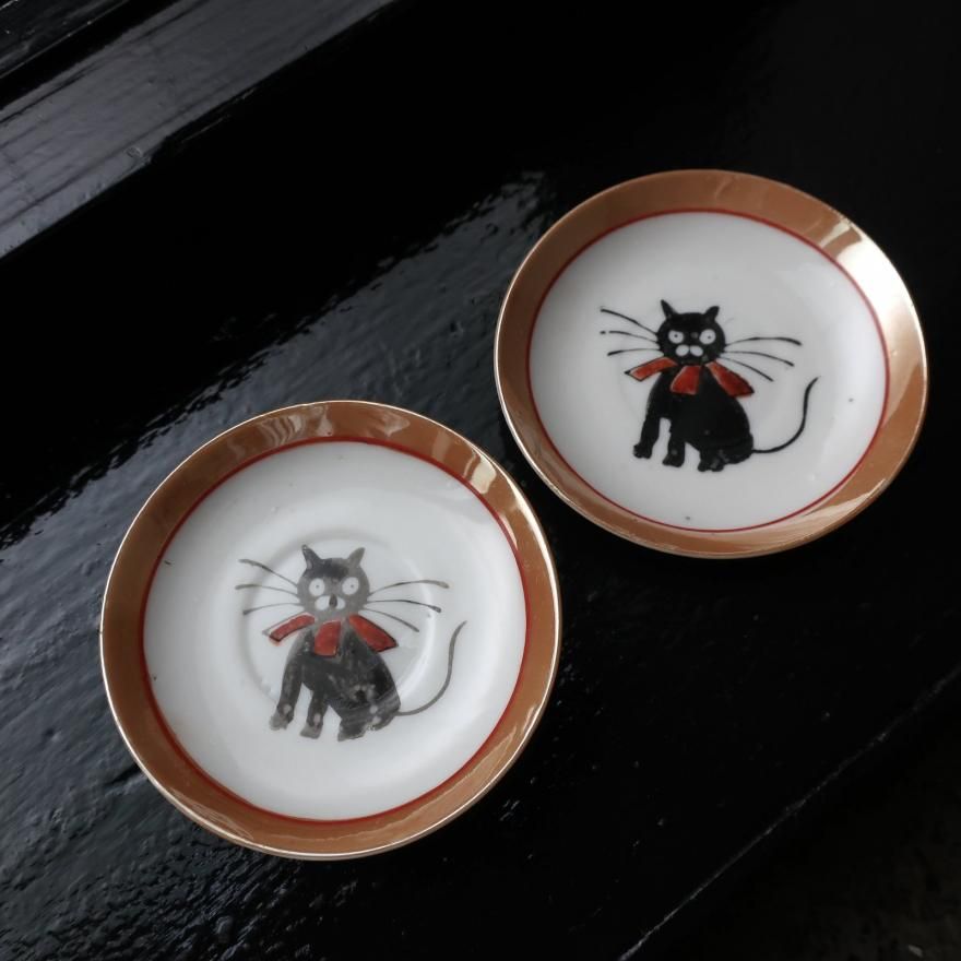 小さめのプレートで、ハンドペイントの黒猫の絵柄が可愛らしいプレートです。