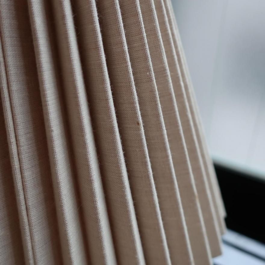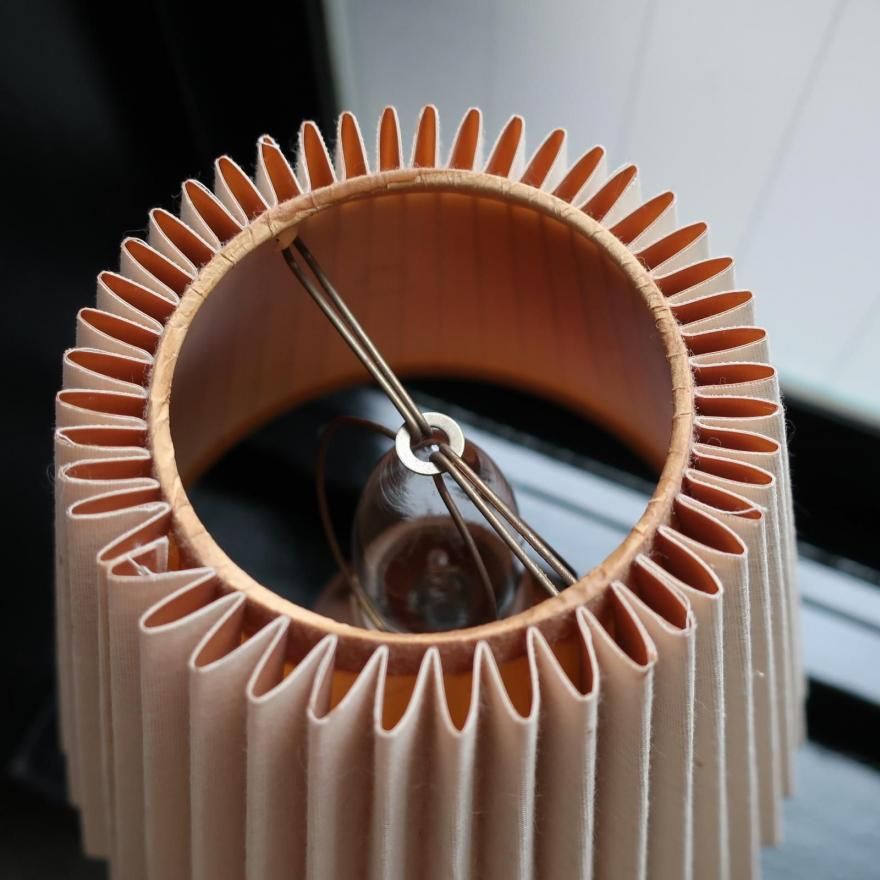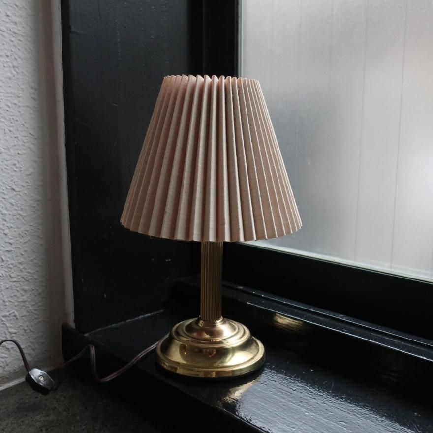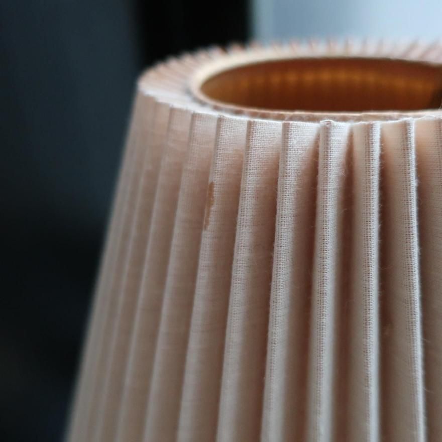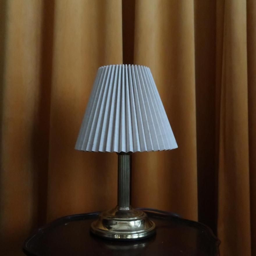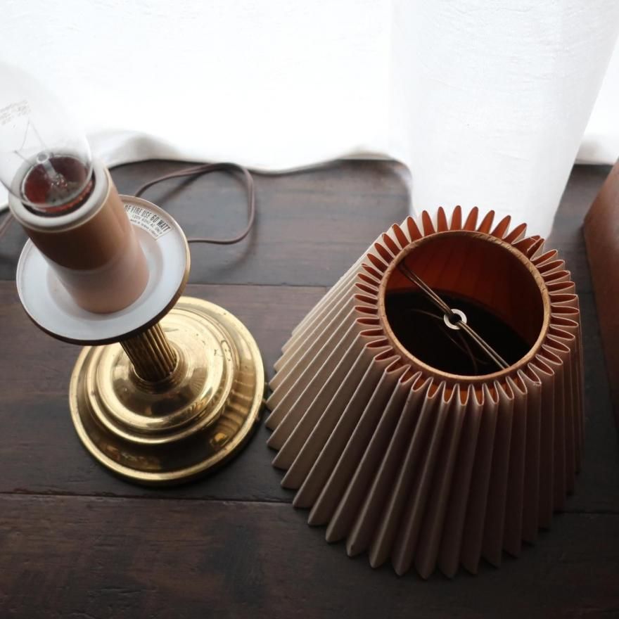 ゴールドのベースに、ベージュのプリーツシェードが可愛らしいテーブルランプです。