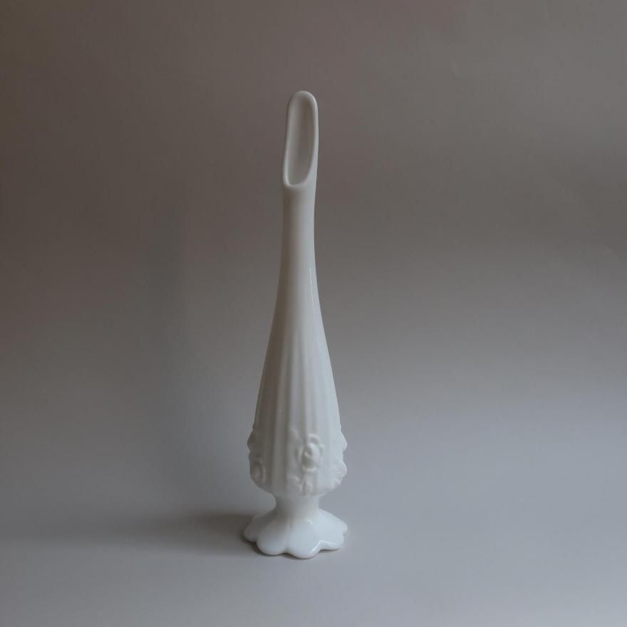 アメリカで買い付けましたVintage Fenton Milk Glass Cabbage Rose Swung Bud flower vase (B198)/ビンテージ フェントン社製 フラワーベース/花器/花瓶です。